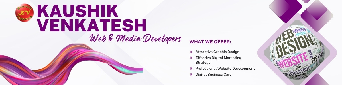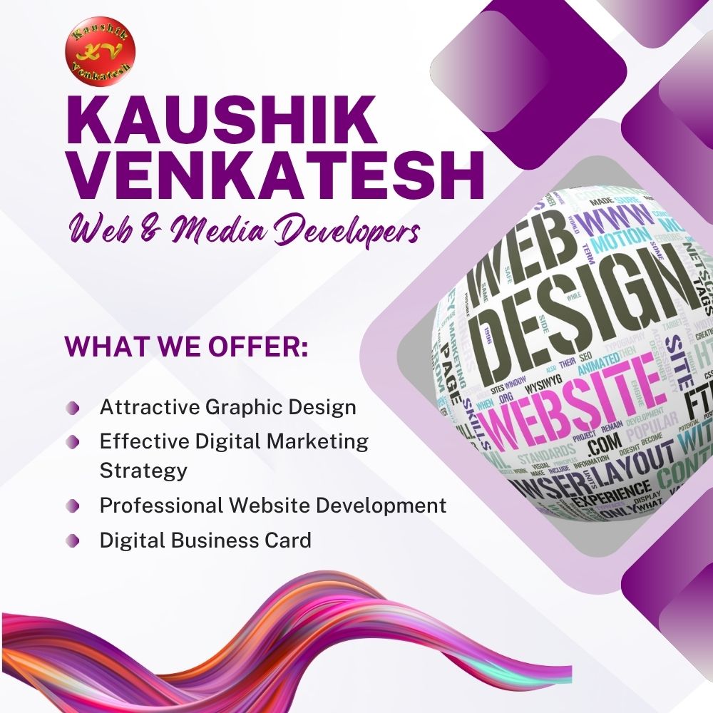 If you’re seeking top-notch services in Web Design and Development, Graphic Design, or Digital Invitations, look no further than Kaushik Venkatesh. We are specialized in creating captivating Social Media Content that elevates your brand’s online presence. In addition, Kaushik Venkatesh offers Digital Visiting Cards that make a lasting impression, along with effective Social Media Marketing strategies tailored to your needs. With expertise in Search Engine Optimization (SEO), we ensures your Digital Content reaches the right audience. Whether you need stunning visuals or a robust digital marketing plan, Kaushik Venkatesh is your go-to professional for all things digital. Contact Us today to transform your ideas into reality and enhance your business’s digital footprint.